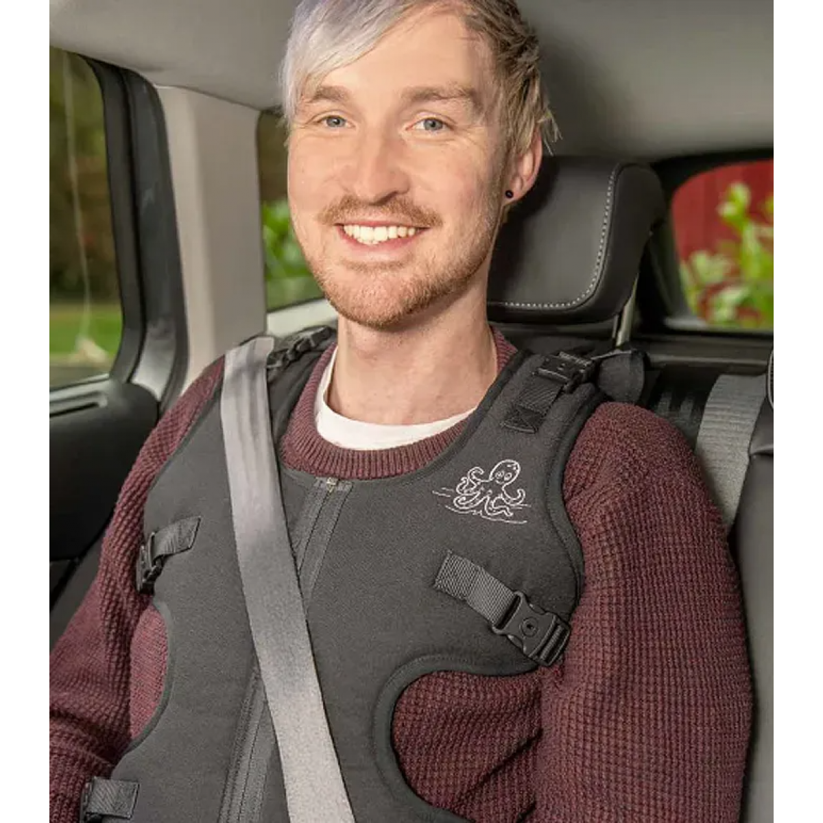 Позиционный жилет Thomashilfen Octopus (Томасхилфен Октопус) предлагает систему, которая поддерживает правильное положение пользователя в автомобиле. Это особенно важно, если трехточечный ремень безопасности автомобиля не обеспечивает достаточную поддержку. Жилет равномерно распределяет нагрузку по телу, что значительно снижает риск травм при резком торможении.