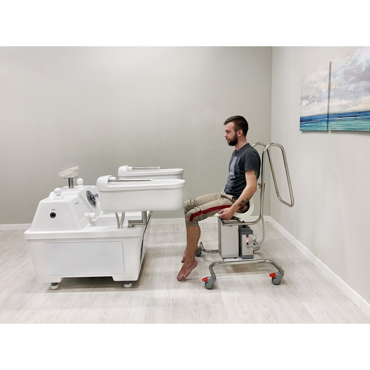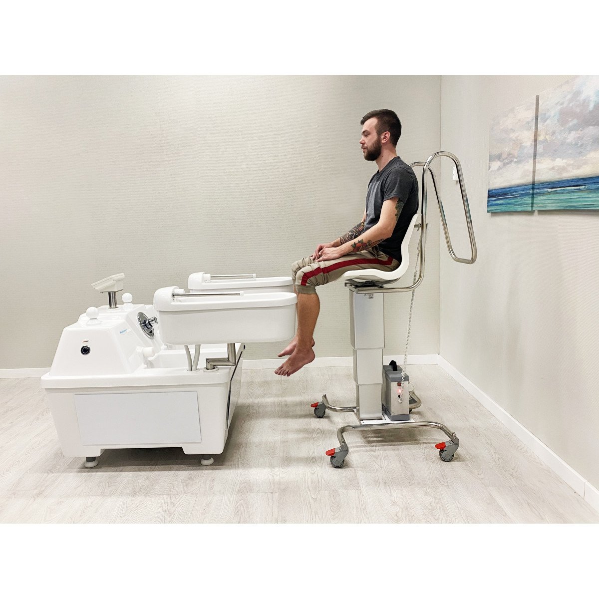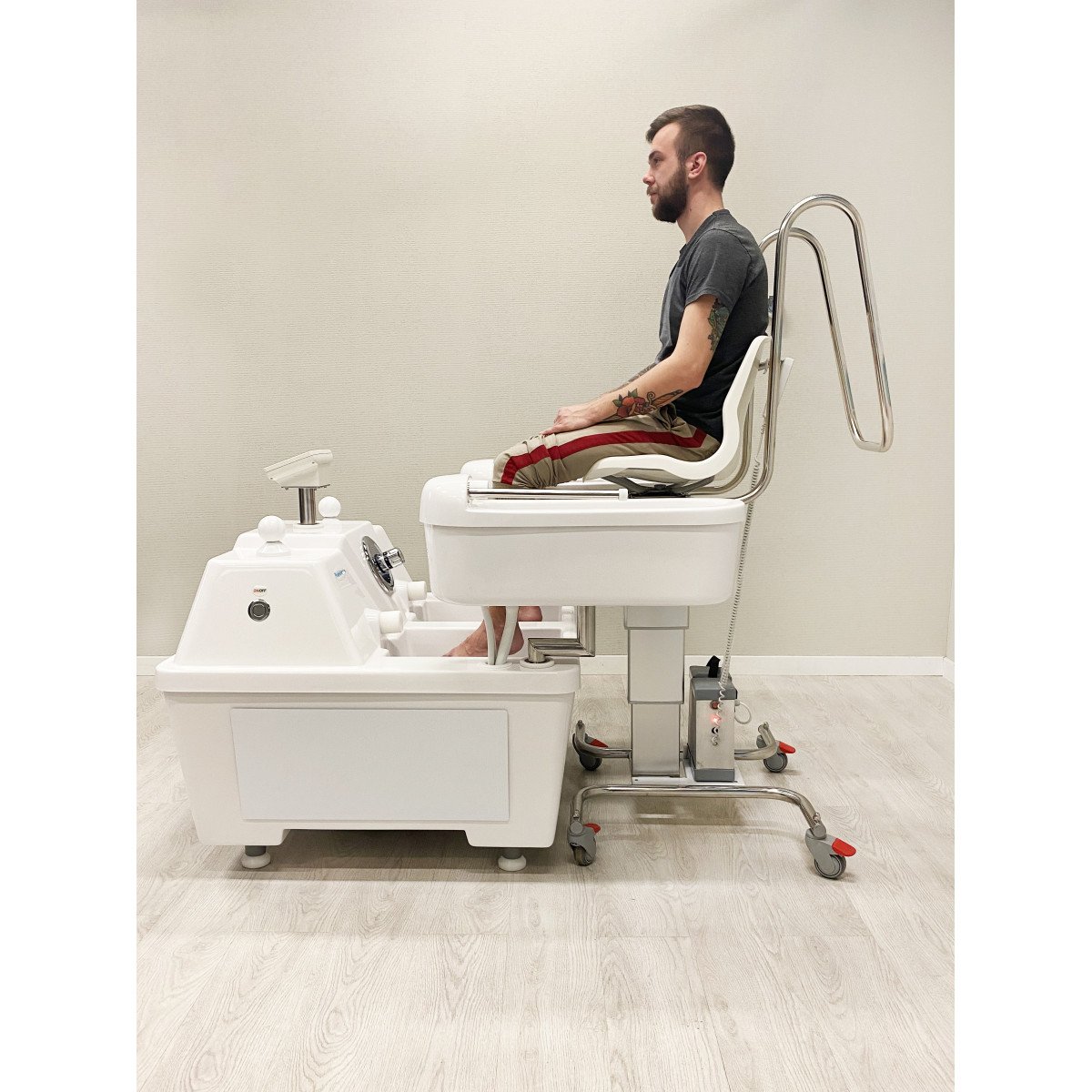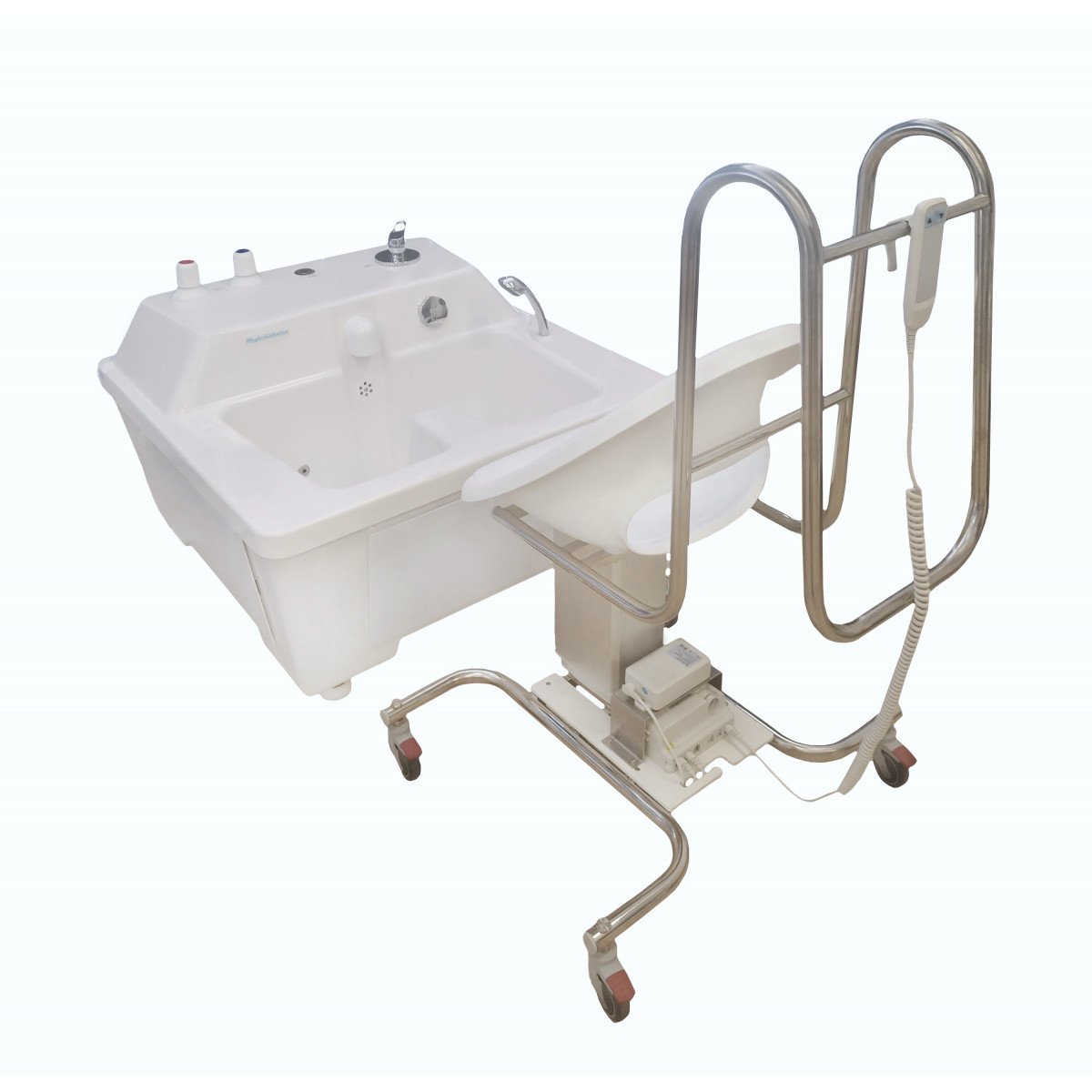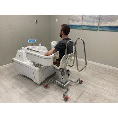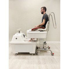 - Вертикальный подъём кресла обеспечивает точное и мягкое опускание в ванну