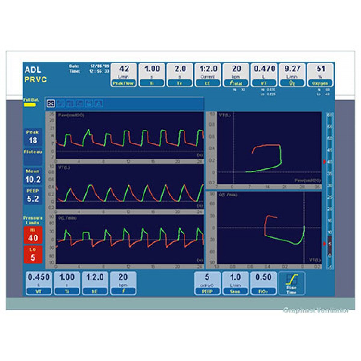 • Отображение графиков и дыхательных петель в реальном времени