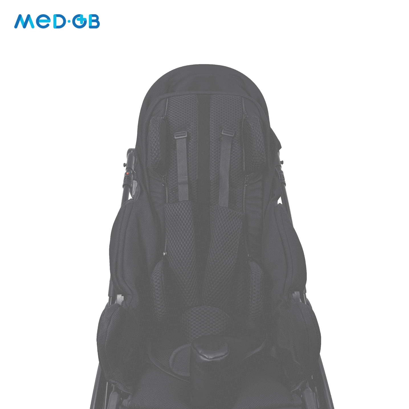 Коляска оснащена анатомическим сиденьем с мягкими вставками и регулируемыми подушками, которые обеспечивают устойчивость и поддержку корпуса. Уникальная функция «колыбель» позволяет синхронно менять угол наклона спинки и сиденья, переходя от активного положения к расслабленному. Надёжные ремни стабилизируют таз и препятствуют смещению во время движения.