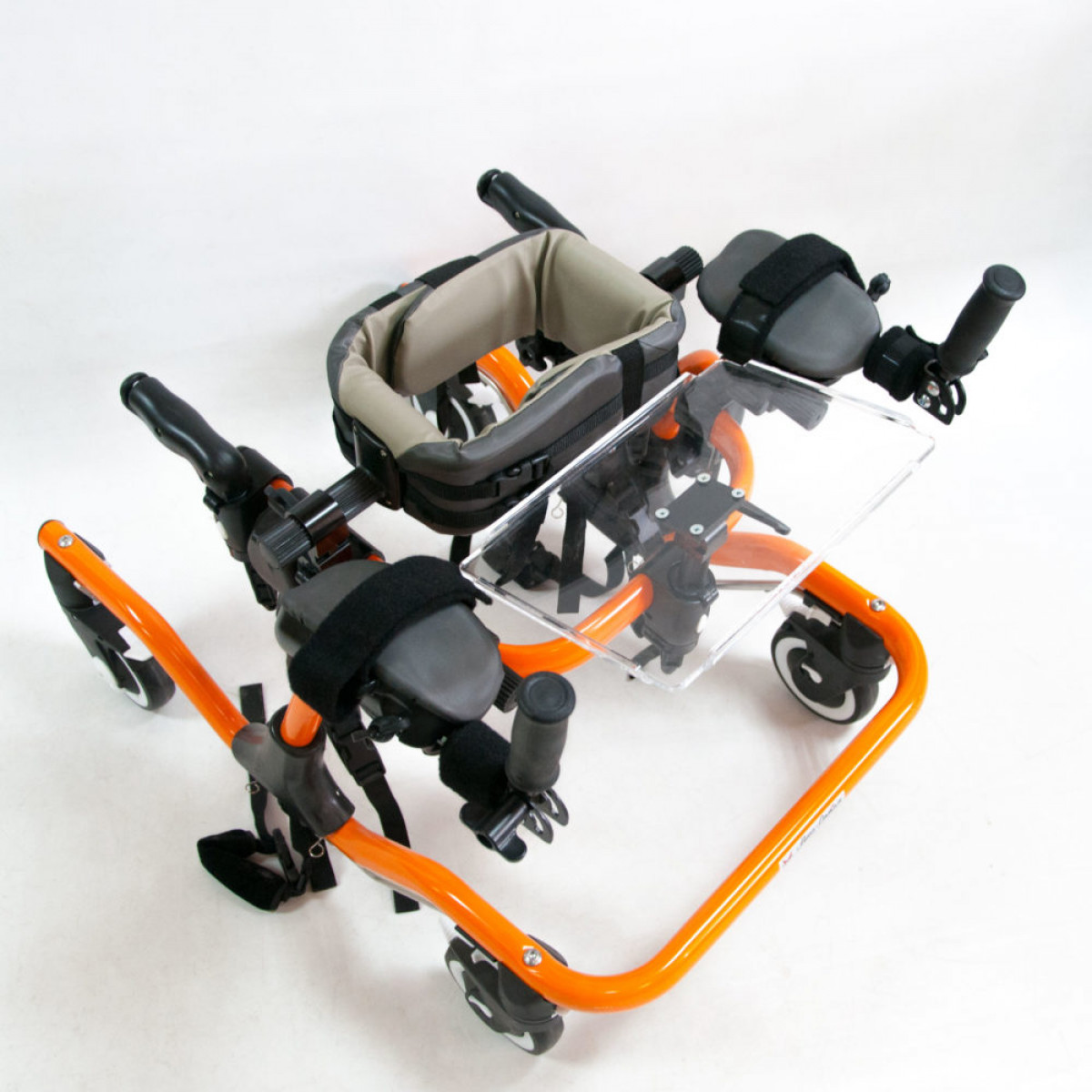 Опоры-ходунки Мега имеют целый ряд специальных приспособлений, которые обеспечивают надёжную фиксацию различных частей тела, что крайне важно для достижения правильного положения во время занятий. Все элементы крепления легко устанавливаются и снимаются, что позволяет адаптировать конструкцию ходунков в зависимости от индивидуальных потребностей конкретного пользователя.