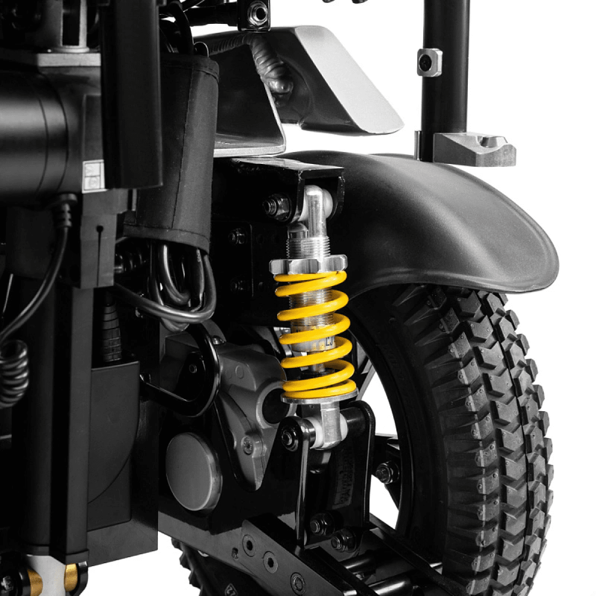 Коляска отличается продуманной системой комфорта: угол наклона спинки, подножек и сиденья регулируется с помощью электропривода, позволяя пользователю подобрать удобное положение для отдыха или активного движения. Эргономичная форма сиденья поддерживает правильную осанку и снижает нагрузку при длительном использовании.
