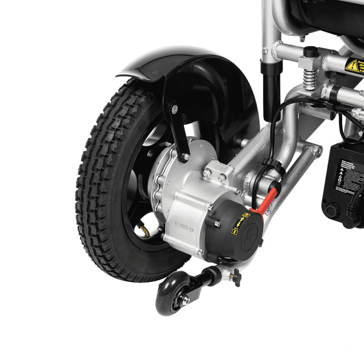 Коляска оборудована регулируемой по жесткости пружинной подвеской сиденья. Такая система подвески помогает минимизировать передаваемые на позвоночник вибрации, что особенно важно при передвижении по неровным или плохим дорогам. Кроме того, независимая подвеска передних колёс способствует улучшению управления и обеспечивает плавность хода.
