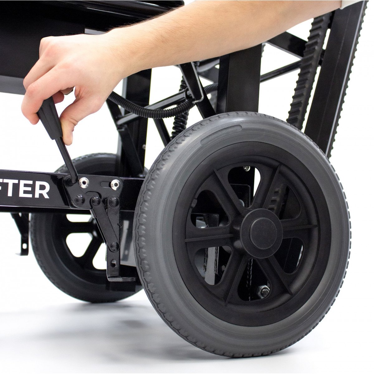 Устройство управляется сопровождающим лицом, что гарантирует дополнительную уверенность и комфорт для пользователя. Сопровождающий может легко управлять Met Lifter, не прилагая чрезмерных усилий. Кроме того, мобильность и автономность Met Lifter позволяют использовать его в самых разных условиях. Например, он может использоваться в домах, больницах, торговых центрах и других местах.