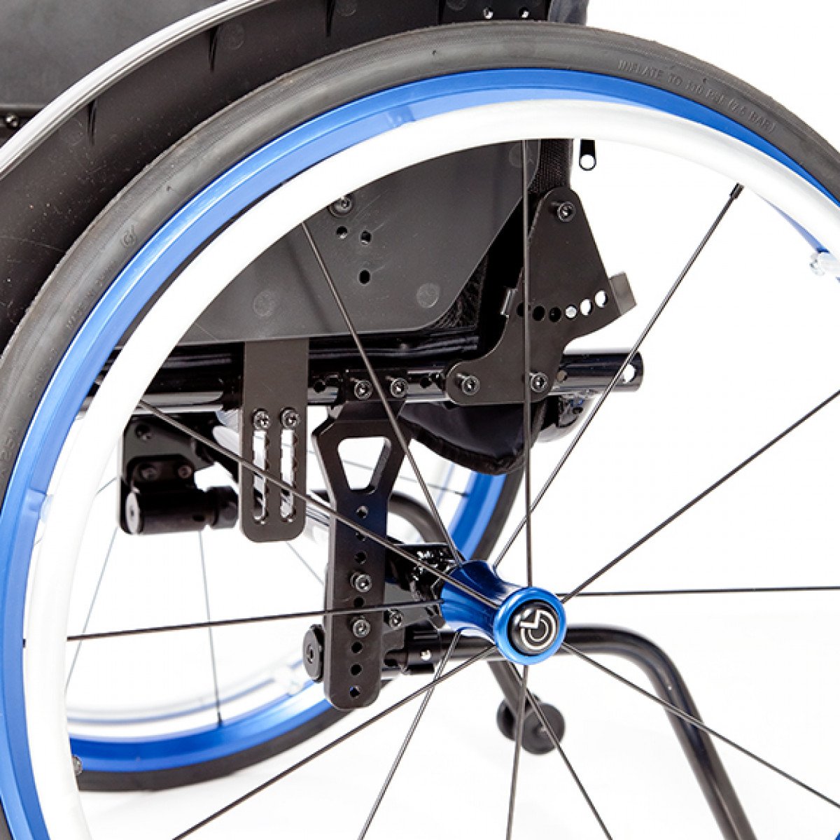 Передние колёса — цельнолитые, задние — быстросъёмные, доступны в вариантах с цельнолитыми или пневматическими шинами. Обода с антискользящим покрытием упрощают управление, а стояночные тормоза с регулировкой обеспечивают контроль при остановке. Для устойчивости предусмотрены антиопрокидыватели, а складные ручки с рельефными накладками делают управление для сопровождающего более удобным.