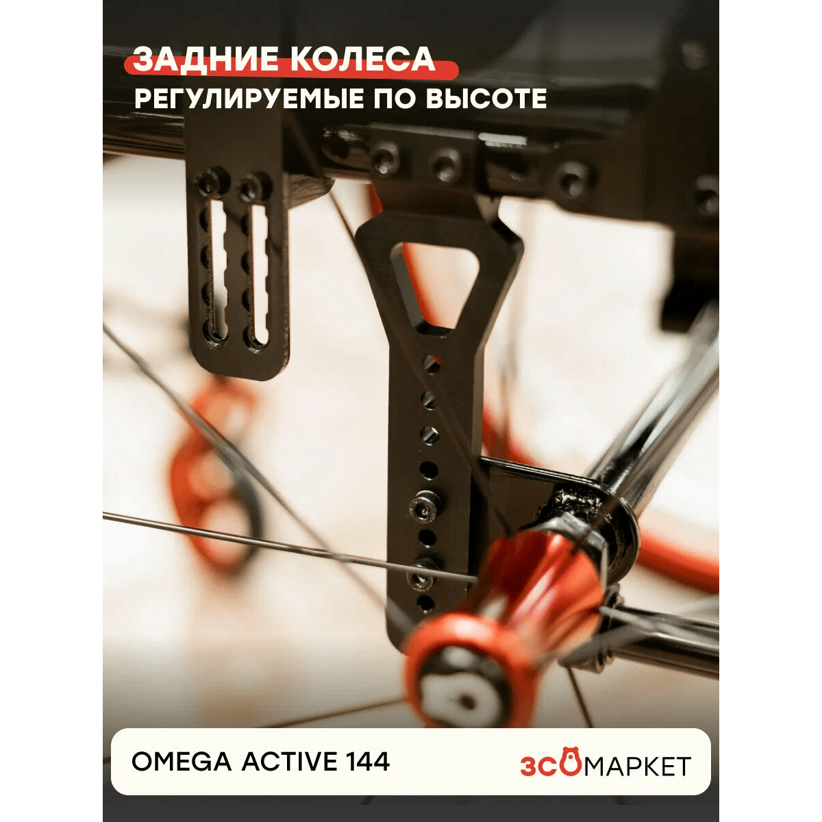 - Быстросъемные задние колёса регулируются по высоте