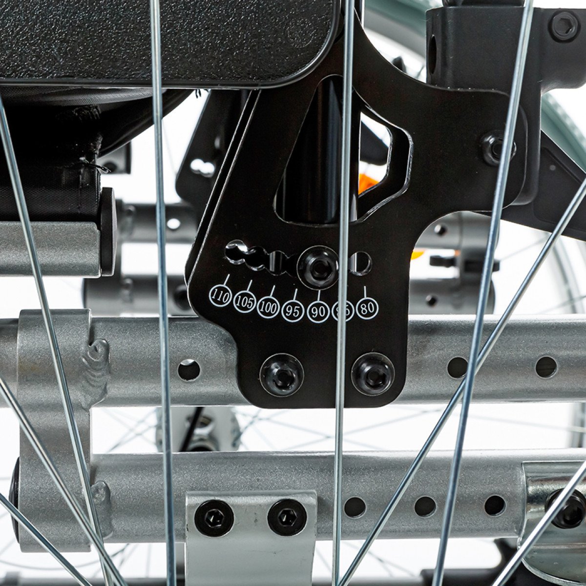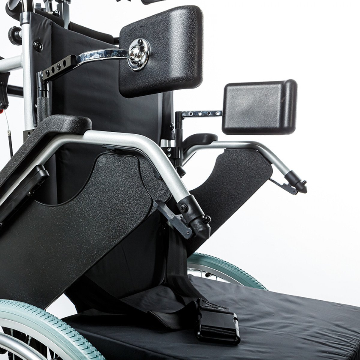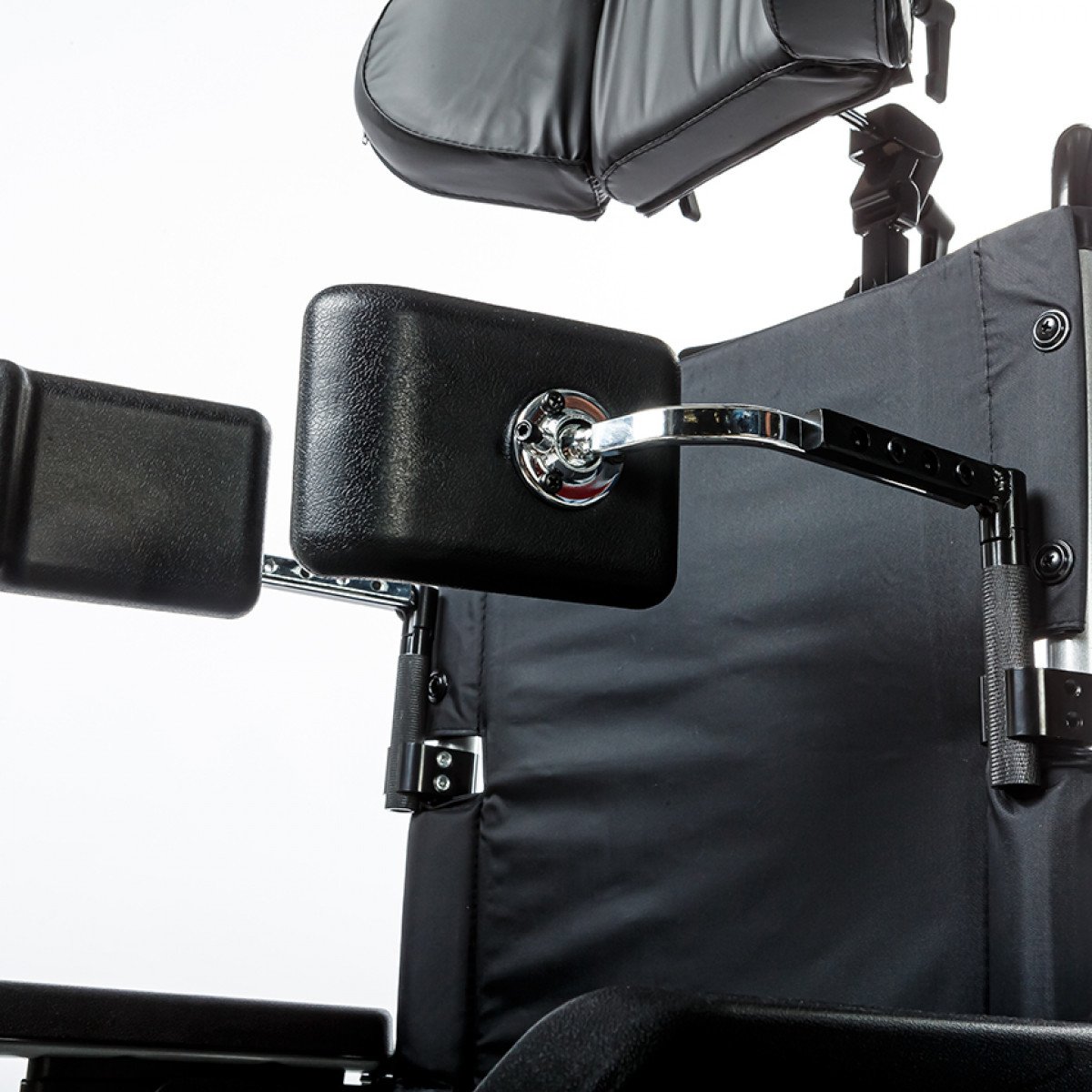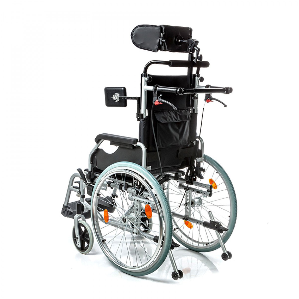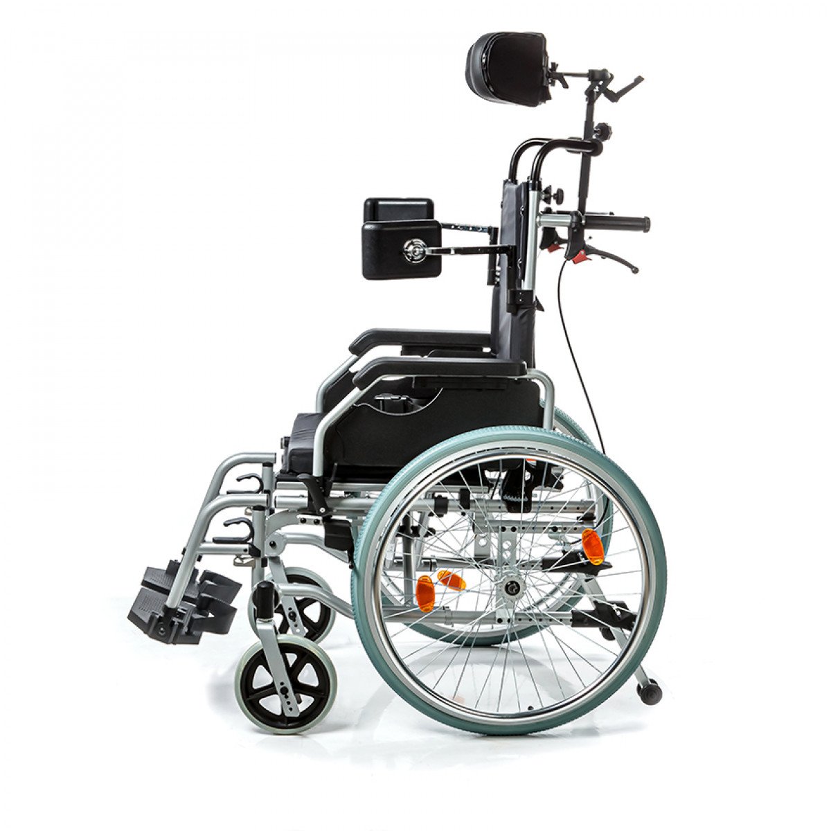 Коляска позволяет точно настроить посадку: спинка регулируется по высоте и оснащена боковыми фиксаторами для удержания корпуса, сиденье — по высоте, глубине и углу наклона. Подлокотники можно отрегулировать, откинуть или снять для удобного пересаживания. Подножки также регулируются и при необходимости убираются, а раздельные опоры для стоп помогают правильно разместить ноги.