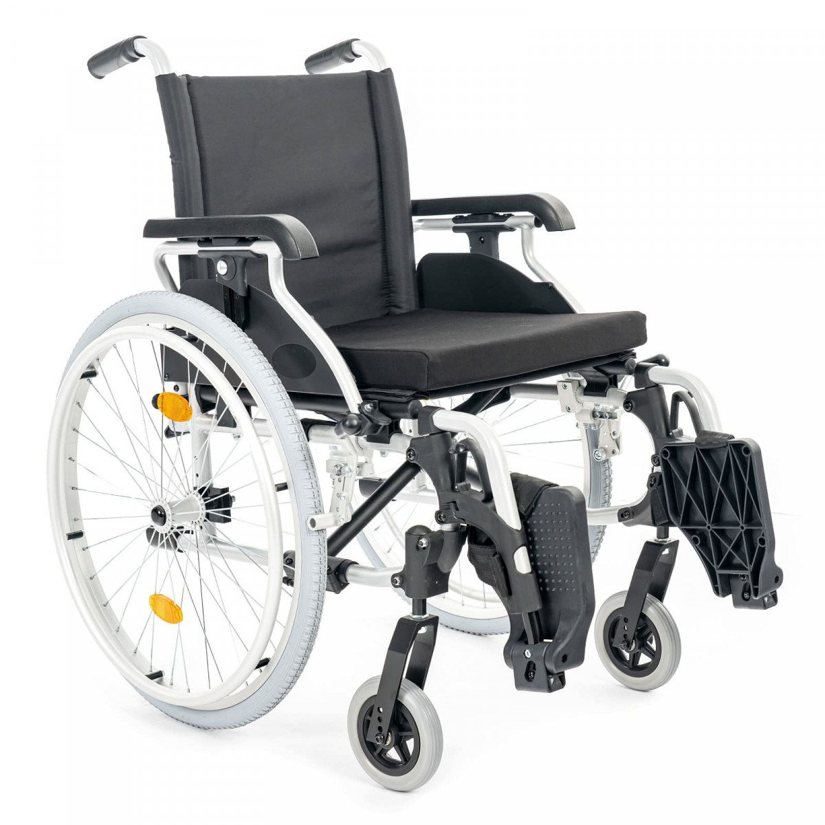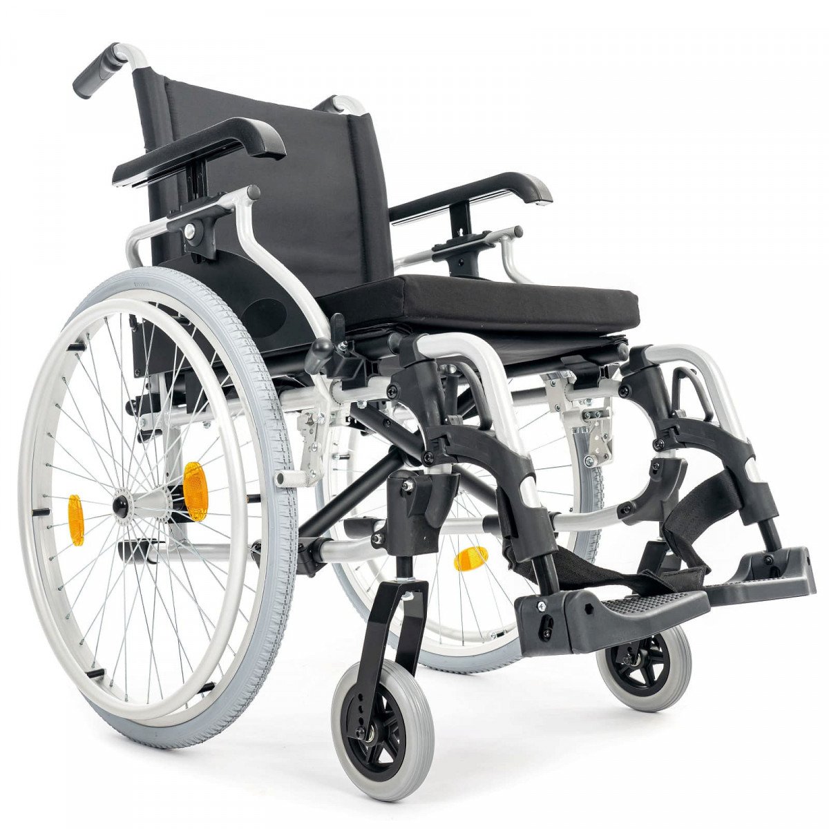 Подлокотники откидные и регулируются по высоте, что облегчает пересаживание. Поручни выполнены из цельного пенополиуретана и дополнены боковыми защитными панелями. Подножки съёмные, регулируются по высоте и углу наклона, а ремни для фиксации ног изготовлены из гипоаллергенного материала. Задние колёса оснащены быстросъёмными механизмами. В зависимости от модификации используются цельнолитые колёса для помещений или пневматические колёса для прогулок на улице.