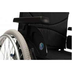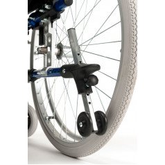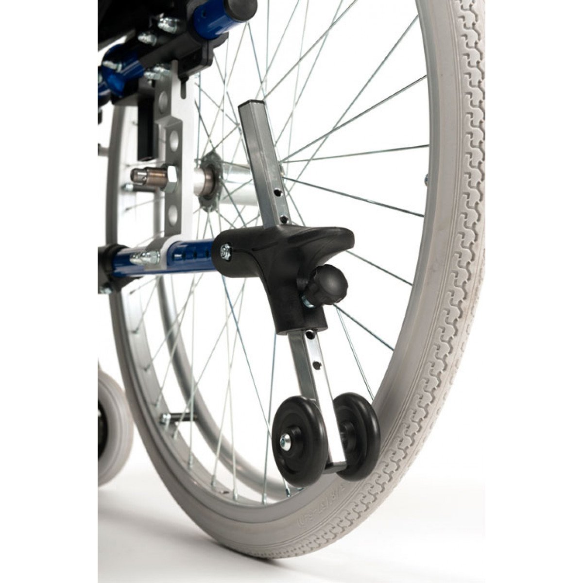 Модель оборудована регулируемыми подлокотниками, которые можно поднимать и опускать, что позволяет пользователю настроить их под свои индивидуальные потребности и обеспечить дополнительный комфорт. Также в комплект входит одно колесо от опрокидывания, предоставляющее надёжную поддержку и предотвращающее возможность переворота кресла-коляски при неожиданном изменении положения.