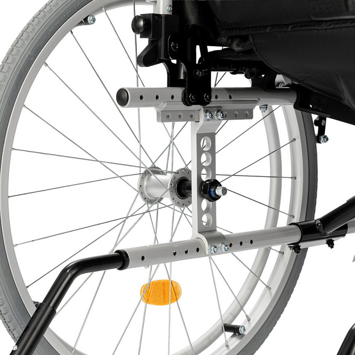 Усиленная крестовина повышает прочность конструкции, а регулировки колёс помогают настроить управляемость. Складная рама и быстросъёмные задние колёса упрощают транспортировку, а стояночные тормоза обеспечивают безопасность при остановке.
