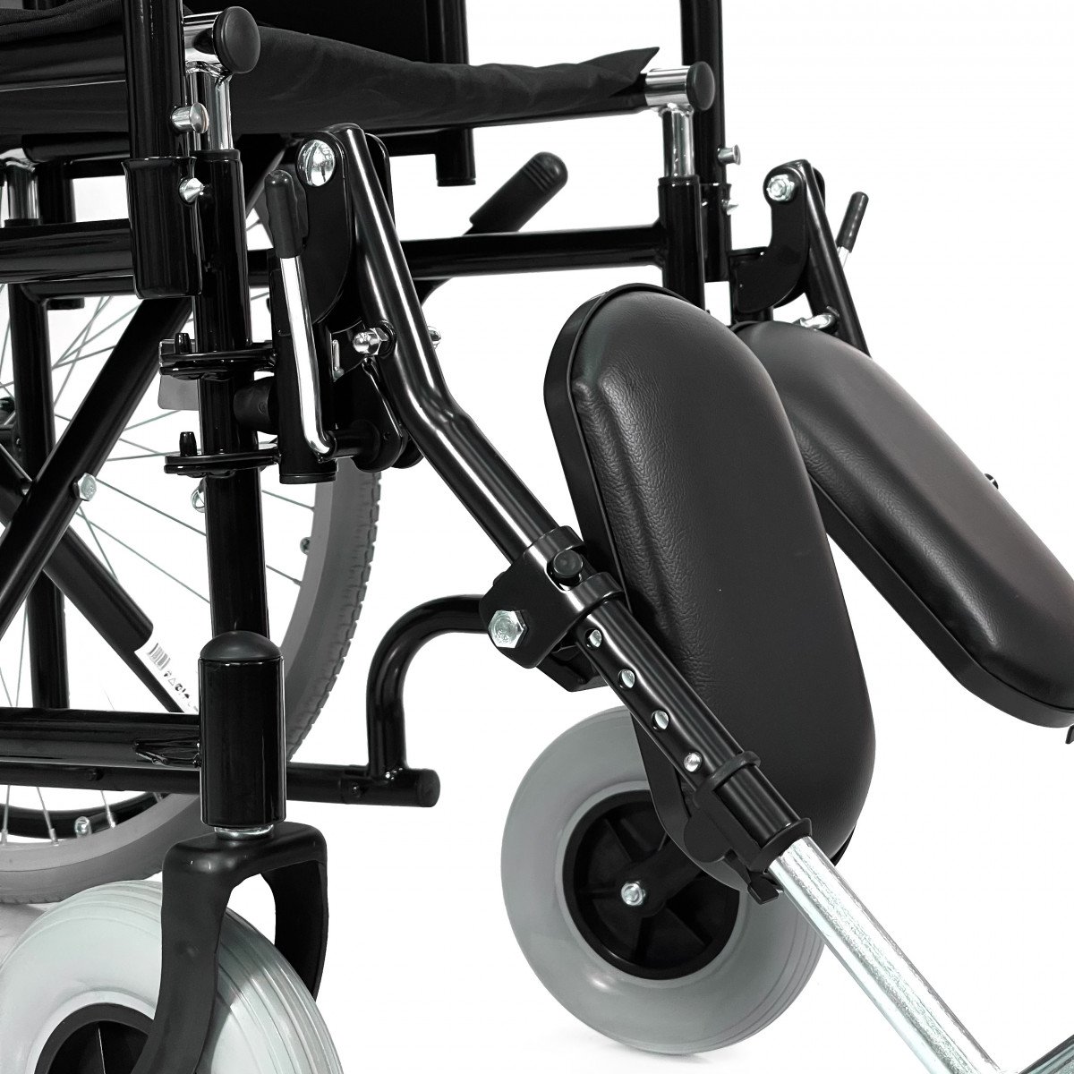 Коляска выполнена на прочной стальной раме, что даёт надёжность при регулярной эксплуатации. Регулируемые элементы помогают подобрать удобное положение корпуса и снизить нагрузку при длительном сидении. Цельнолитые колёса не требуют обслуживания и обеспечивают устойчивость на разных покрытиях.