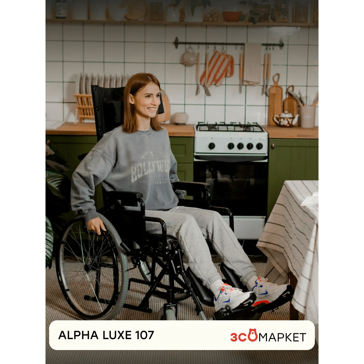 Кресло-коляска INTCO Alpha Luxe 107 (Интко Альфа Люкс 107) — складная модель с ручным приводом для дома и улицы. Главная особенность — удлинитель спинки и широкий диапазон настроек, которые позволяют точнее адаптировать посадку под пользователя и обеспечить более комфортную поддержку.