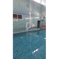 - Вертикальное движение подъёма экономит место у борта бассейна