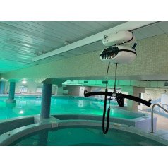 Рельсы могут устанавливаться на потолке или стенах и охватывать любое пространство — от отдельной зоны до всего помещения. В зависимости от конфигурации система работает как прямой монорельс, позволяющий перемещать пациента между двумя точками, либо как траверсная система — когда подвижная перекладина двигается по рельсам и позволяет свободно перемещаться по всей комнате. Управление подъёмом и перемещением остаётся простым и безопасным: это может делать и персонал, и сам пользователь, если это позволяет его состояние.