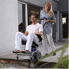 Подъёмник работает от аккумулятора и выдерживает нагрузку до 130 кг. Благодаря электронной системе контроля движения устройство двигается плавно, без рывков и вибраций. Конструкция из авиационного алюминия делает модель лёгкой, но прочной, а автоматическое торможение и защита от перегрузок гарантируют безопасность при использовании.