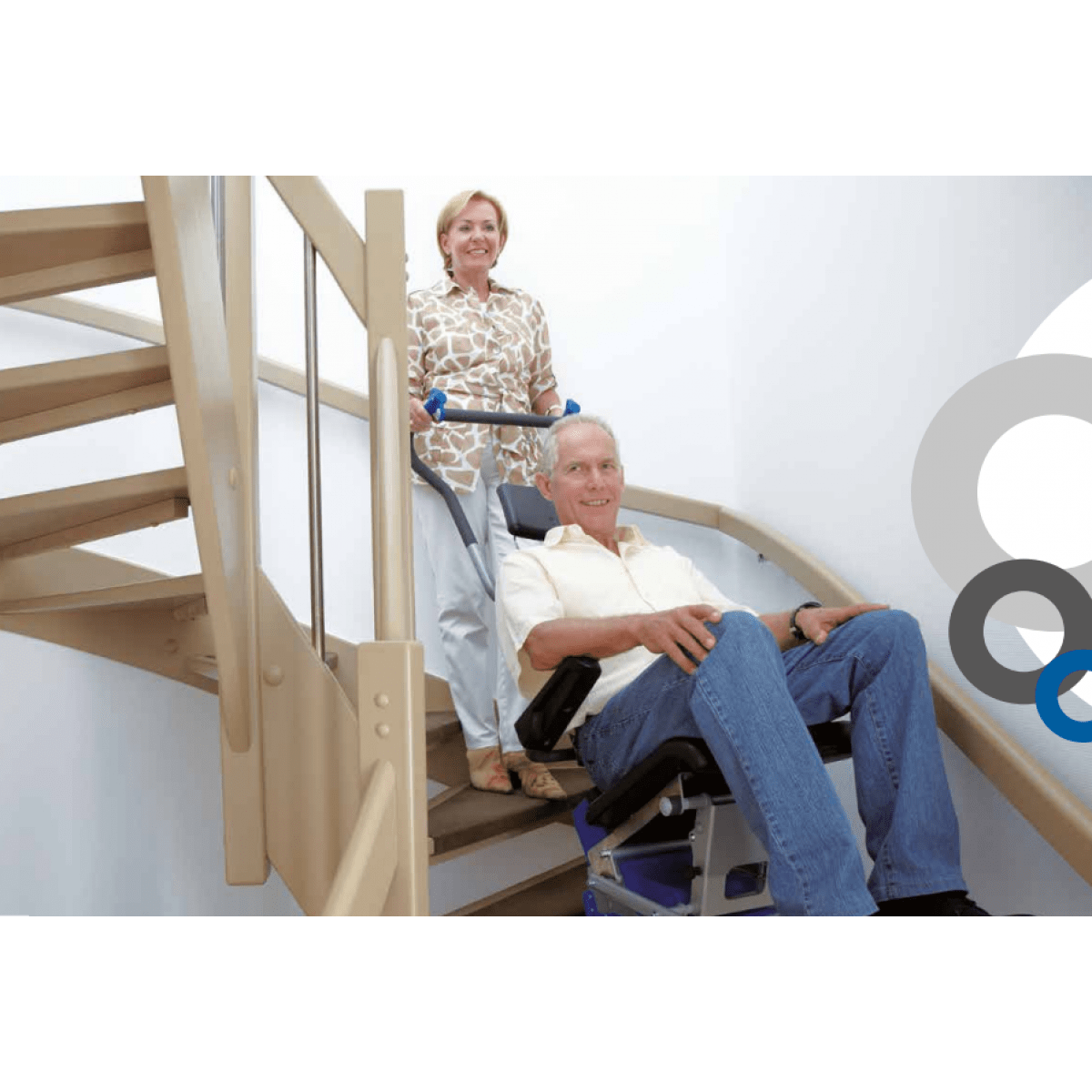 Лестничный подъёмник Sano PT S 160 (Сано ПиТи Эс 160) создан для безопасного перемещения людей по лестницам в условиях ограниченной мобильности. Модель оборудована встроенным креслом с подлокотниками и подножкой, а также регулируемым подголовником, что делает поездку более удобной и устойчивой. Управление осуществляется с помощью кнопок, расположенных по обе стороны рукоятки, что позволяет сопровождающему легко контролировать процесс.