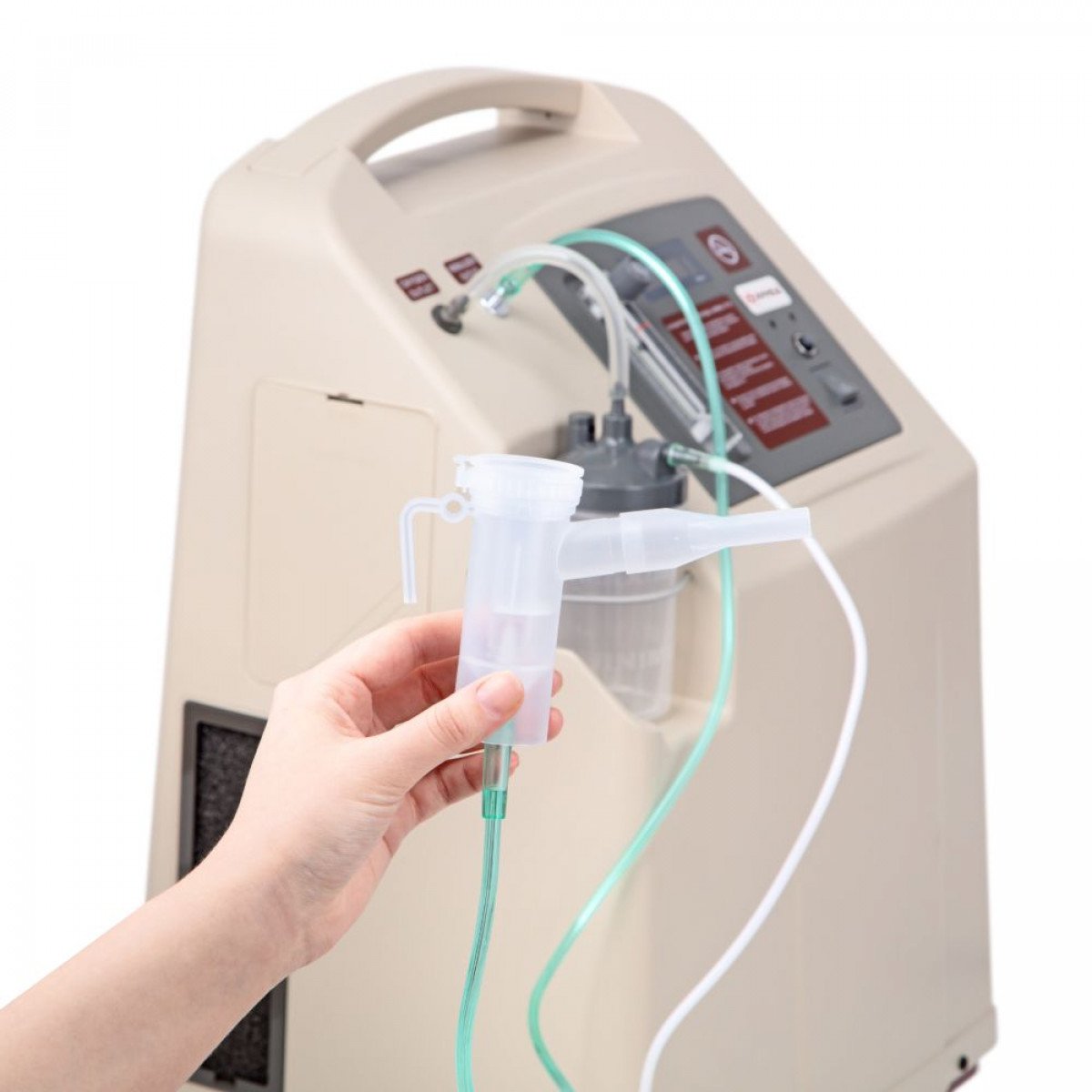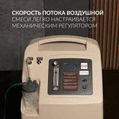 Главное конструктивное преимущество модели — наличие встроенного ингалятора. Это позволяет применять аппарат не только для классической кислородотерапии и ароматерапии, но и для ингаляционного введения лекарственных препаратов, что делает его незаменимым в лечении заболеваний органов дыхания. Аппарат обладает производительностью до 10 литров в минуту, прошел клинические испытания и может использоваться в качестве основного или резервного источника кислорода.