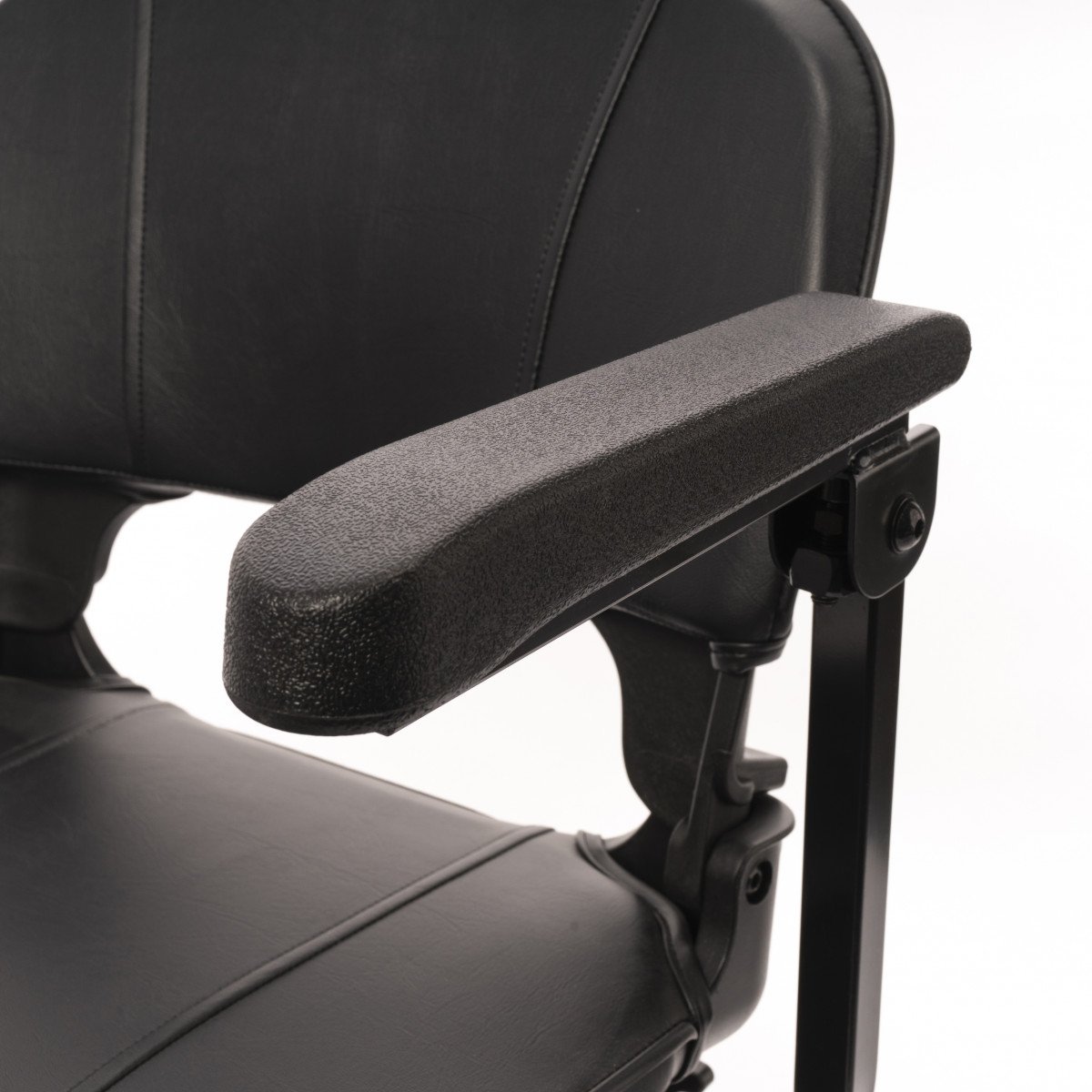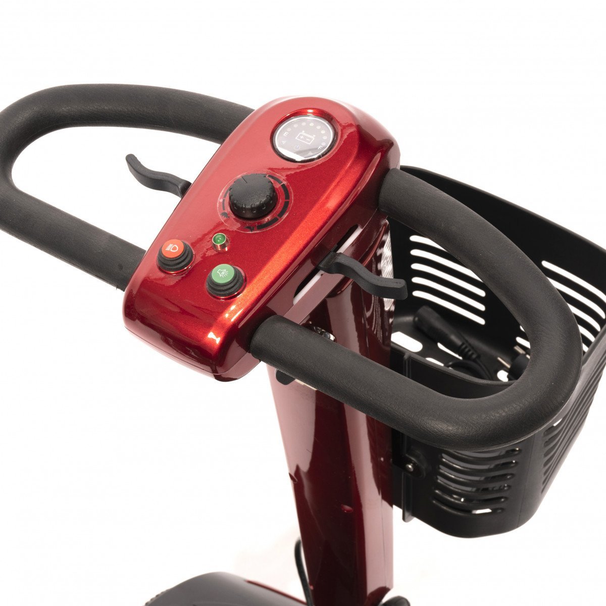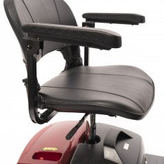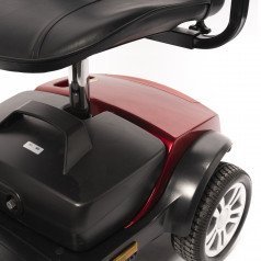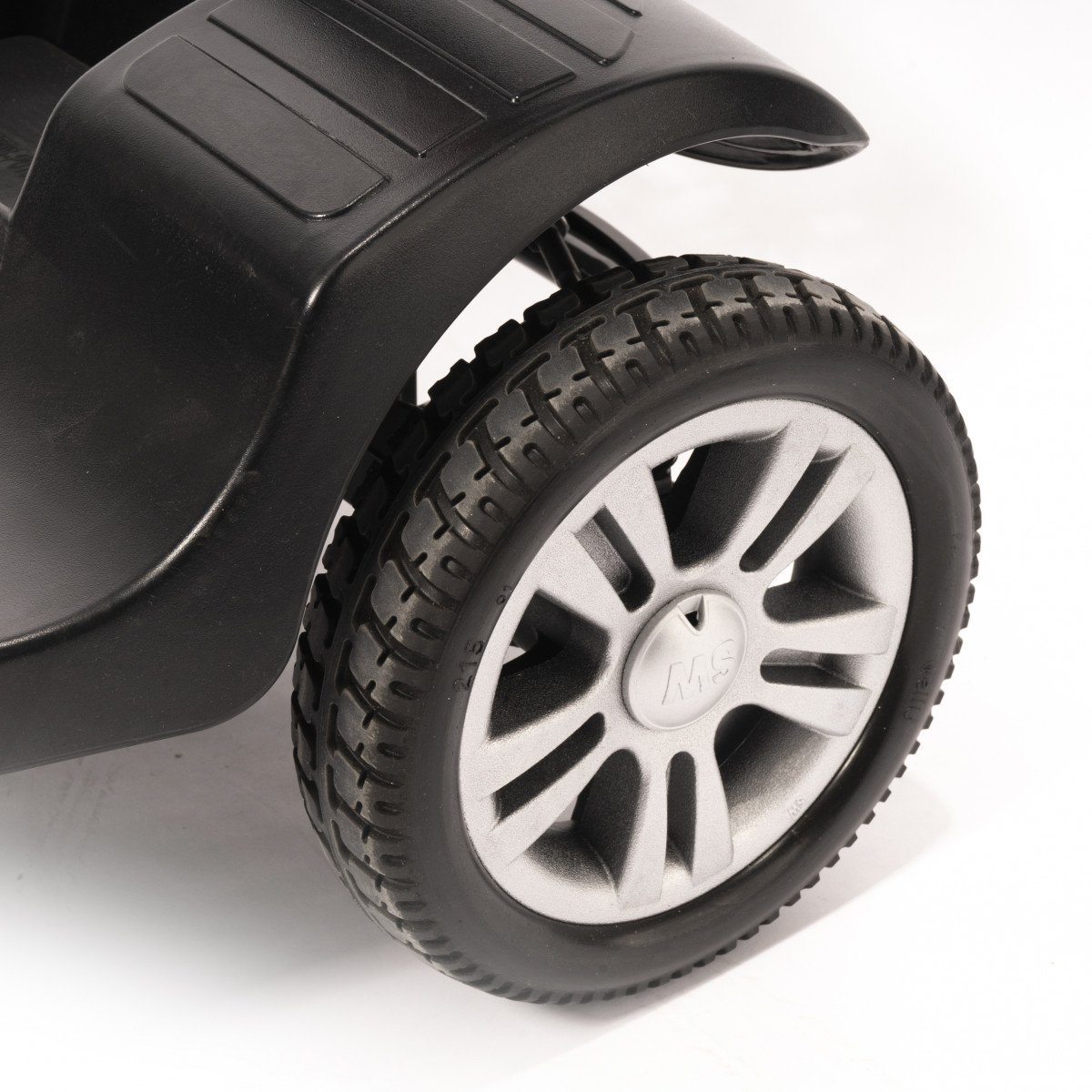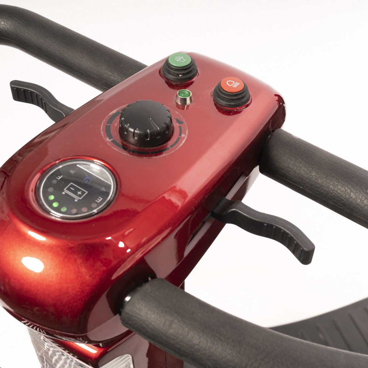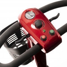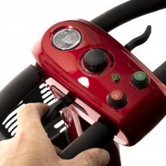 Он оснащён удобным рулём с панелью управления и поворотным сиденьем с откидывающимися подлокотниками, что делает посадку комфортной даже для пользователей с проблемами опорно-двигательного аппарата. На передней панели руля расположены функции: переключатель «включить/выключить», индикатор заряда батареи, регулятор скорости, включатель передней фары, звуковой сигнал и акселераторы.