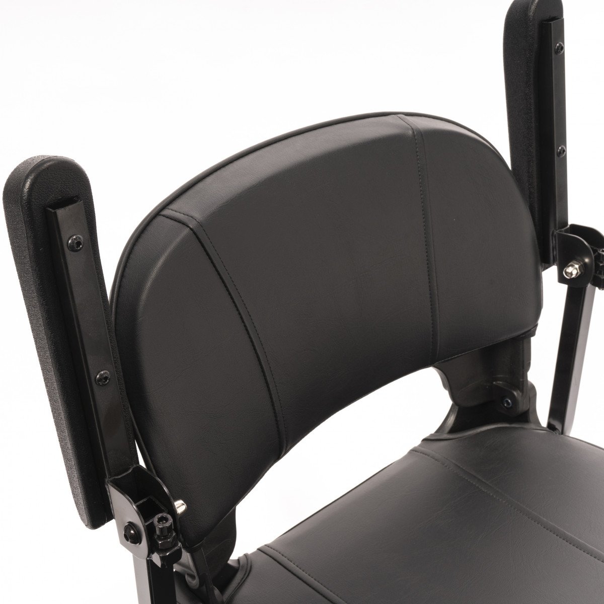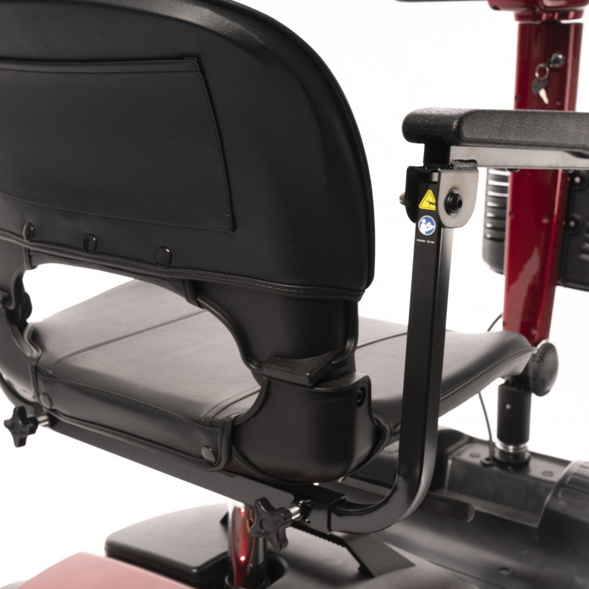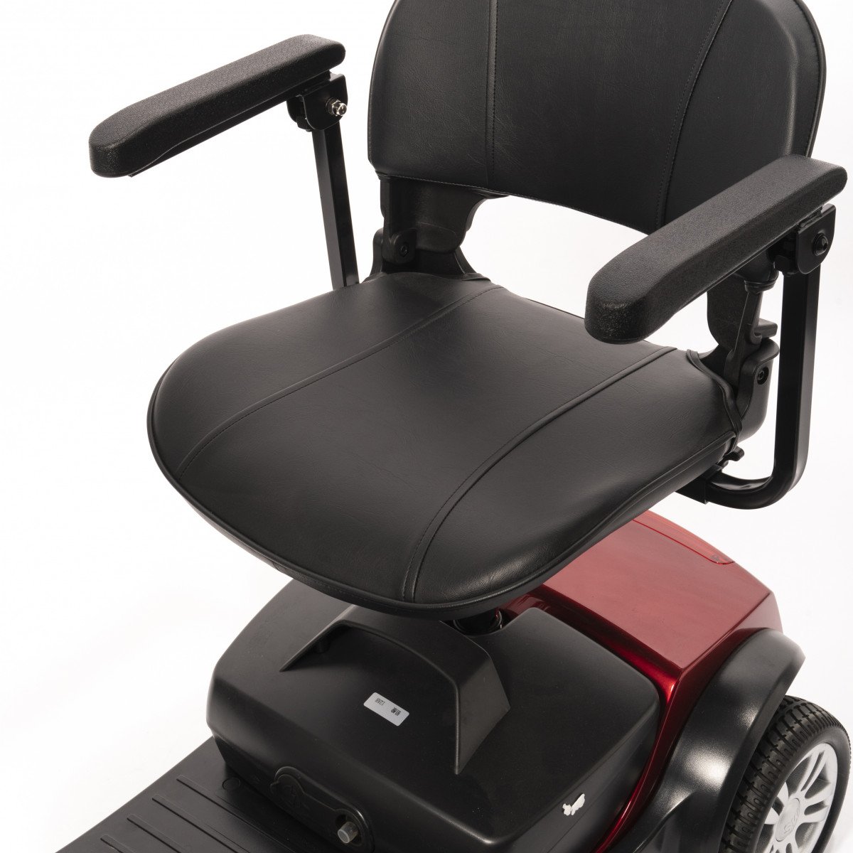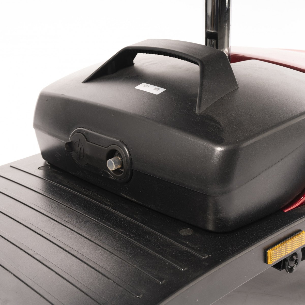 Он оснащён удобным рулём с панелью управления и поворотным сиденьем с откидывающимися подлокотниками, что делает посадку комфортной даже для пользователей с проблемами опорно-двигательного аппарата. На передней панели руля расположены функции: переключатель «включить/выключить», индикатор заряда батареи, регулятор скорости, включатель передней фары, звуковой сигнал и акселераторы.