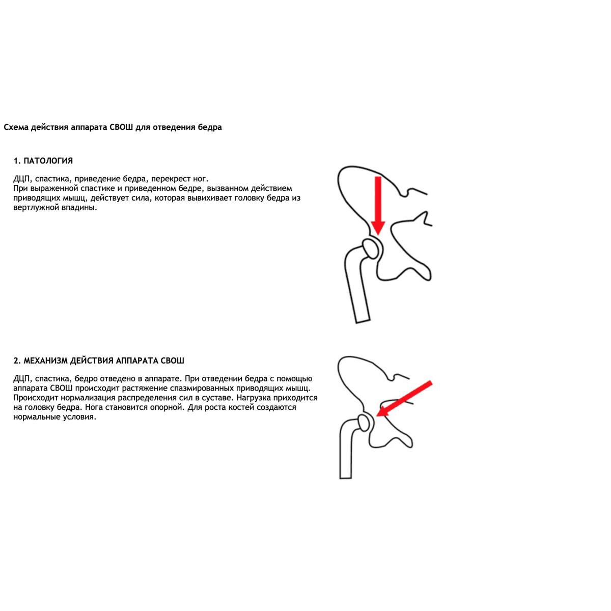 - Улучшение формирования вертлужной впадины за счёт коррекции положения бедра