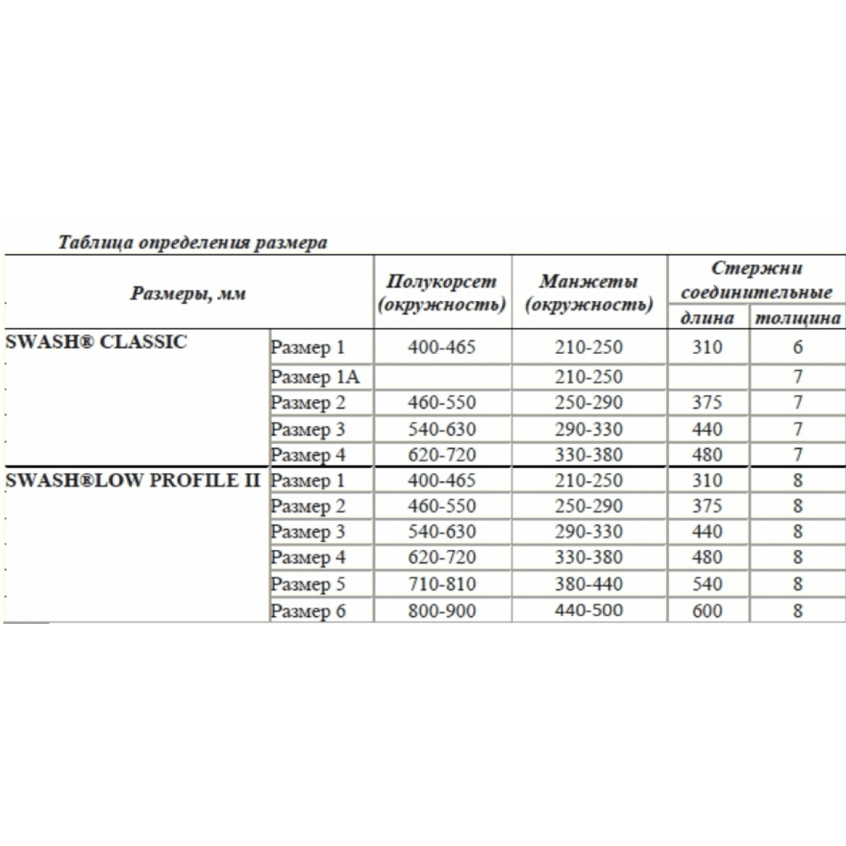 | Размер | 1 | 2 | 3 | 4 |
