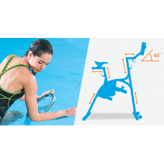 Аквабайк устойчиво стоит в воде, подходит для пользователей разной комплекции и легко настраивается под индивидуальные параметры. Быстрая система регулировок позволяет изменить положение руля, седла и рамы за считанные секунды. Перфорированная конструкция обеспечивает быстрый слив воды при извлечении из бассейна, а защита от коррозии делает тренажёр надёжным даже при использовании в хлорированной или морской воде. Идеальное решение для персональных и групповых тренировок.