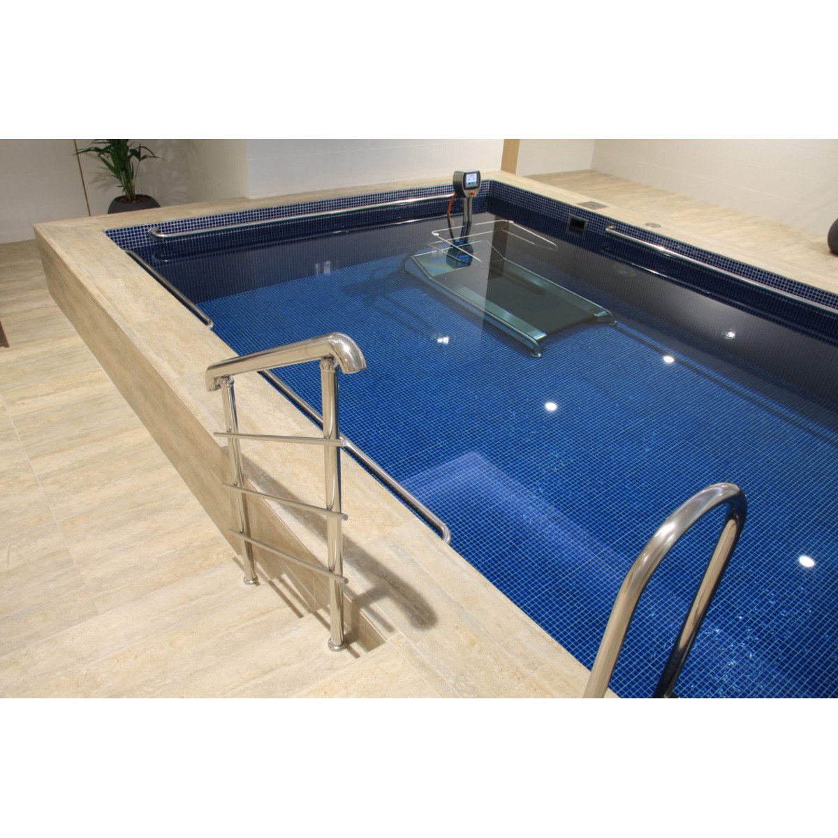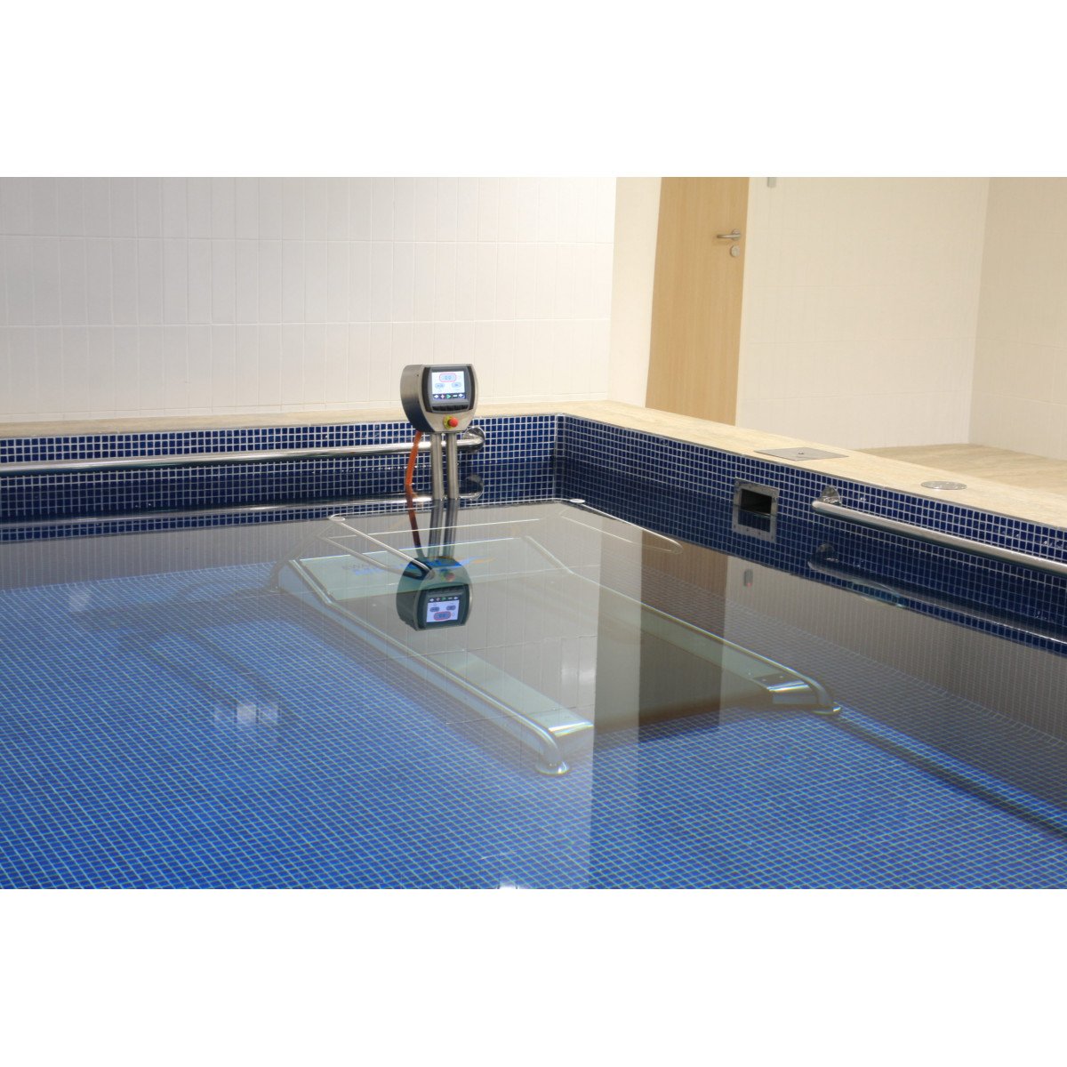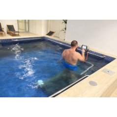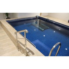 Pooltrack Standard — вариант для уже существующего бассейна. Дорожка устанавливается без сложных строительных работ и не требует слива воды. Оснащена локальным пультом управления и аварийной остановкой, занимает минимум пространства и подходит как для реабилитации, так и для интенсивных тренировок. При необходимости управление можно вынести за пределы бассейна, чтобы инструктор контролировал процесс.