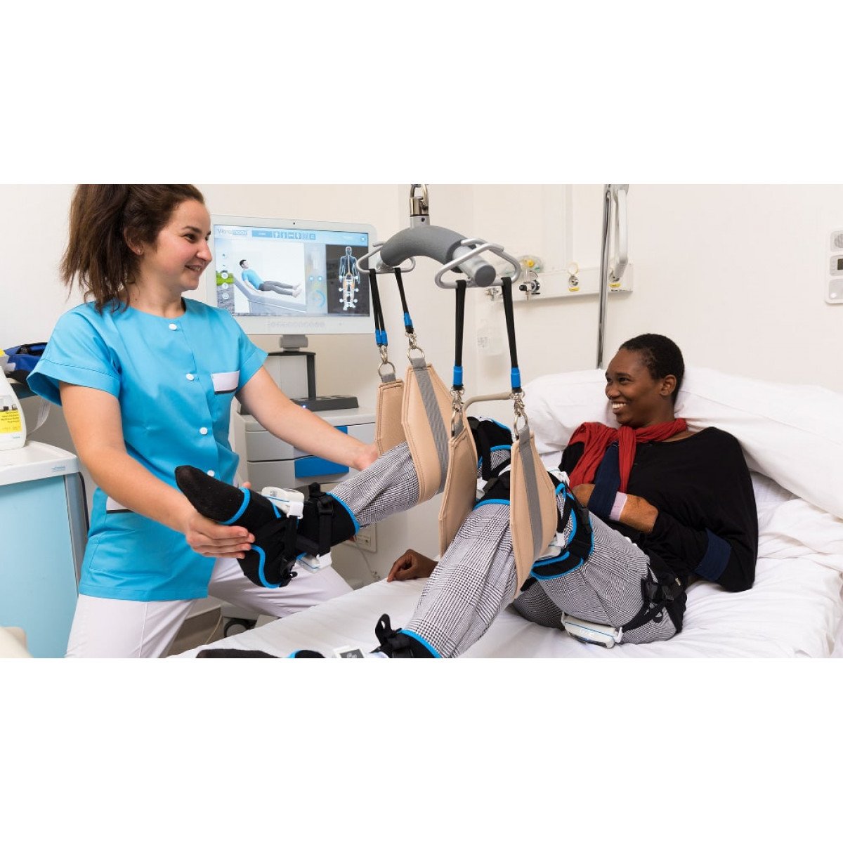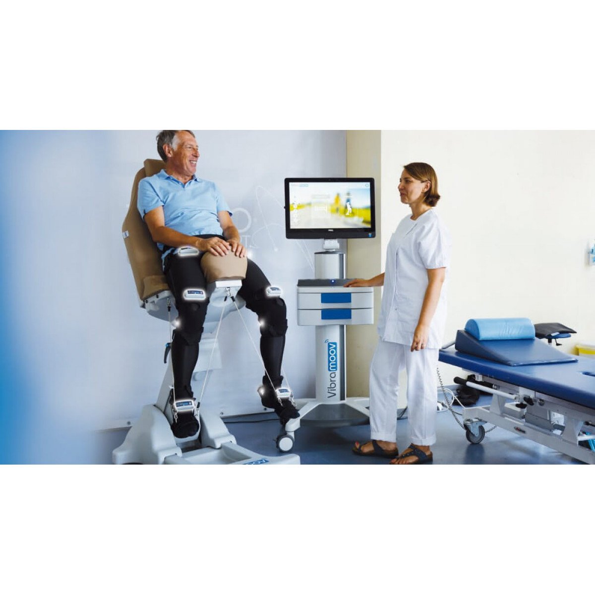 Кроме того, мобильный блок Vibramoov, представляющий собой своеобразный подъёмник, позволяет врачам проводить раннюю вибрационную терапию у пациентов, находящихся в лежачем состоянии. Это критически важно для сохранения локомоторного паттерна даже в тех случаях, когда пациент не может самостоятельно передвигаться. Данная терапия помогает создать у пациента ощущение движения ног, что способствует активации мышечного ответа и позволяет производить активные движения, ускоряя процесс восстановления.
