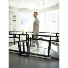 - Параллельные брусья. Модель также обладает функцией параллельных брусьев, которые используются в медицинской реабилитации для развития силы и координации.
